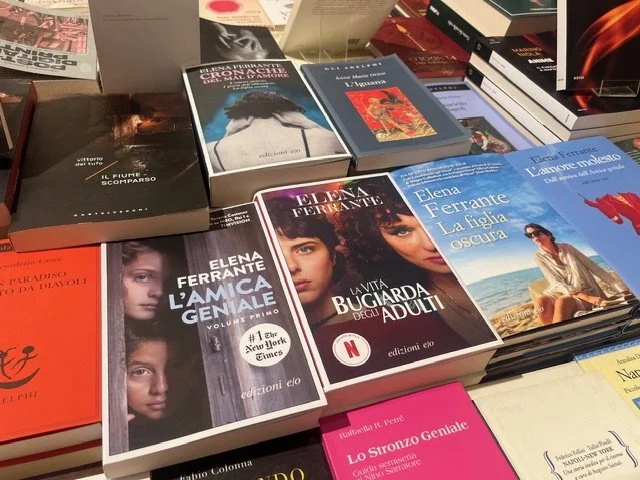 My husband and I are in Naples. We are there largely because I wanted to see where Lenu and Lila may have lived in My Brilliant Friend. We sit at an outdoor restaurant in what seems to be an alley. Motor scooters whiz by at startling speed, weaving among pedestrians carrying their food shopping. Graffiti of Maradona, the soccer star, covers most walls; garbage bags are piled high. Just up the block I can see shirts and sheets hanging on lines outside apartment windows. The waiters, who are young, look rough, all muscle and attitude. I smile a lot and try not to anger them with my broken Italian. “Scuzi,” I say, and “Grazie.” We order pizza, anticipating the best in the world.